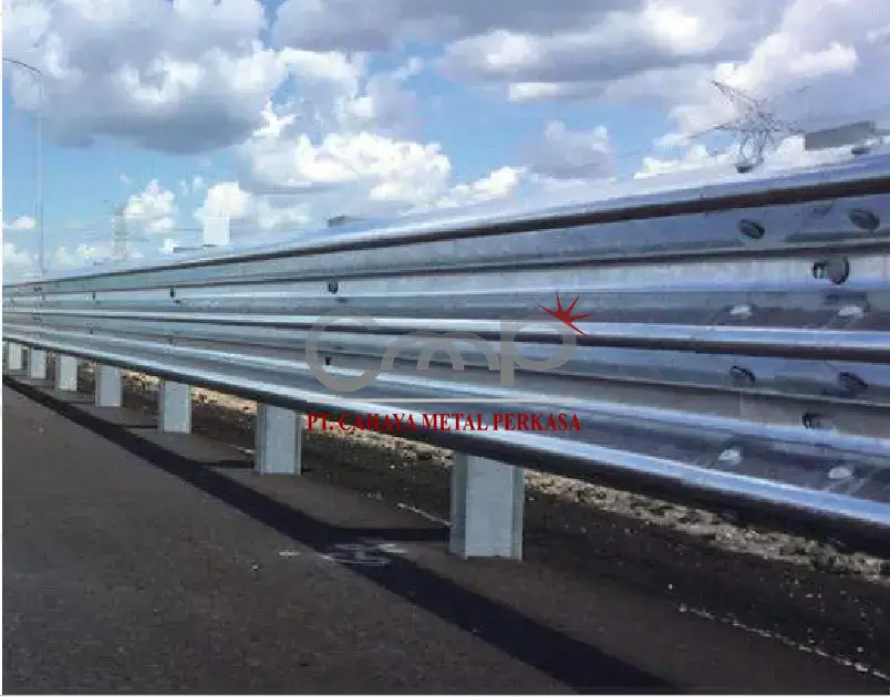 Komponen yang dipasang sejajar dengan jalan, terbuat dari plat baja SS400 / SPHC yang dibentuk dasarnya adalah dua potong W-Beam guardrail yang dibentuk menjadi satu bentuk tunggal.